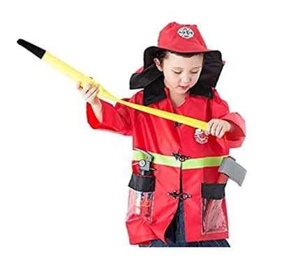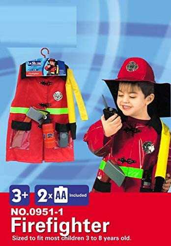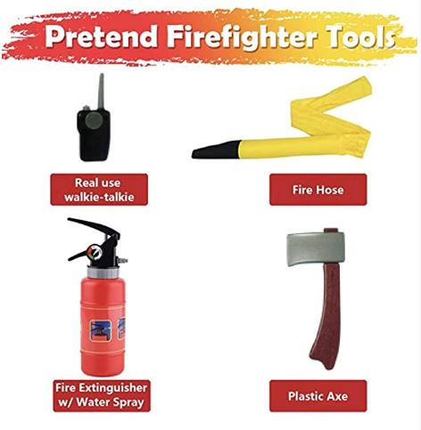 - It includes a helmet, badge, fire extinguisher, bullhorn and reusable name tag.